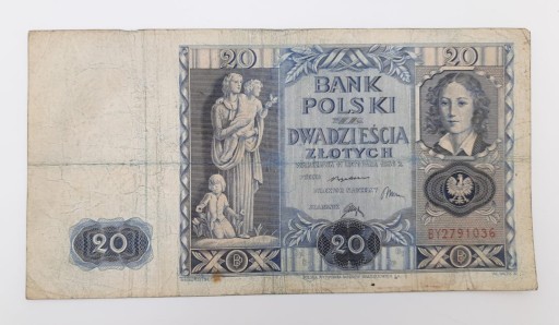 Стара колекційна банкнота Польща 20 злотих 1936 р