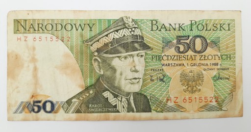 Стара колекційна банкнота Польща 50 злотих 1988 р