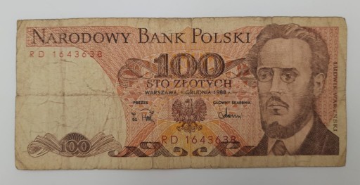 Стара колекційна банкнота Польща 100 злотих 1988 р