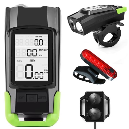 ✅ Повний велокомплект - передній ліхтар з вбудованим лічильником і звуковим сигналом і задній світлодіодний ліхтар.