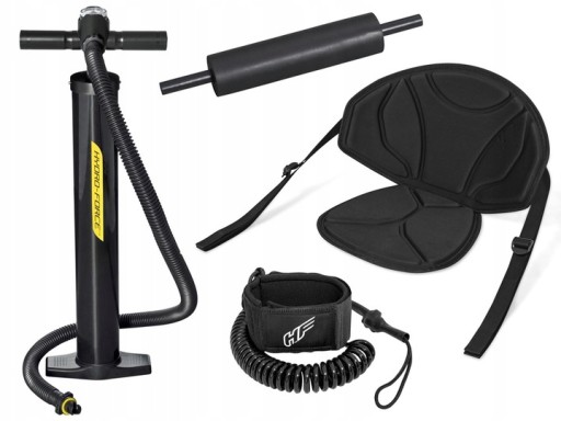 На носовій і задній частині дошки є практичний еластичний шнур, який дозволяє закріпити ваш багаж. Якщо ви втомитеся від веслування стоячи, ви можете швидко перетворити свій SUP на зручний каяк завдяки сидінню та підставці для ніг, які входять у комплект.