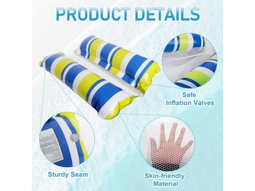 Легко переносити: надувна конструкція цих гамаків для басейну полегшує їх перенесення та зберігання, що робить їх ідеальним аксесуаром для басейну в дорозі.