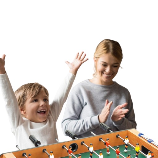 Кожен гравець має власну команду з настільного футболу, яку він пересуває за допомогою неслизьких ручок, що відповідають за обраний ряд гравців. Гравці з кожної команди розміщуються на 4 металевих штангах. Коли команда забиває гол, ви повинні перемістити точку на таблиці очок, яка розташована над воротами з обох боків таблиці.