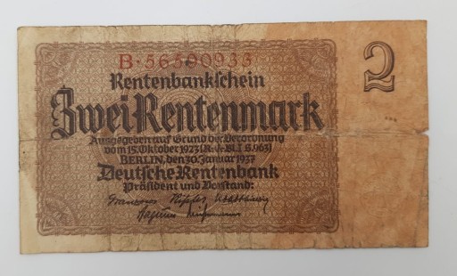 Стара колекційна банкнота Німеччина 2 рентенмарки 1937 року