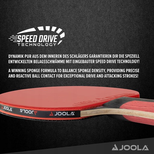 Класична ракетка для настільного тенісу JOOLA ROSSKOPF! має стандартну структуру, а завдяки хорошим параметрам і технологіям PRO FRICTION і SPEED DRIVER забезпечує адекватну швидкість і точність.