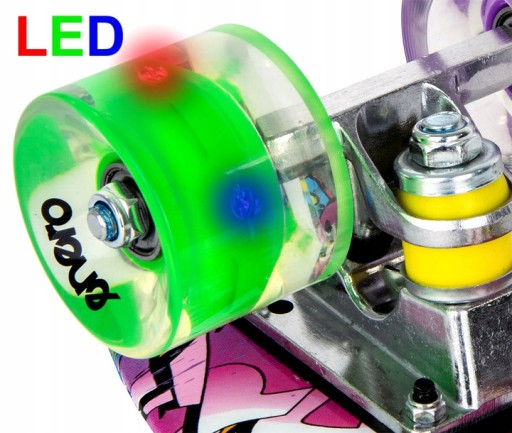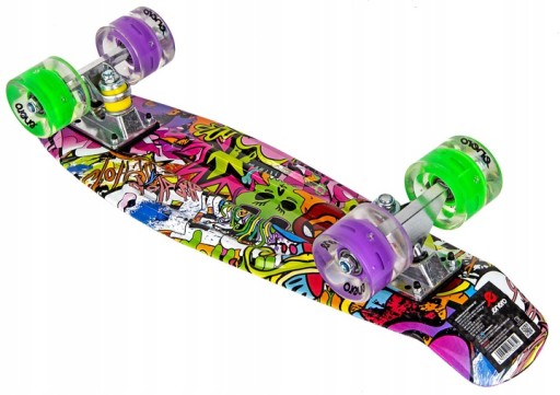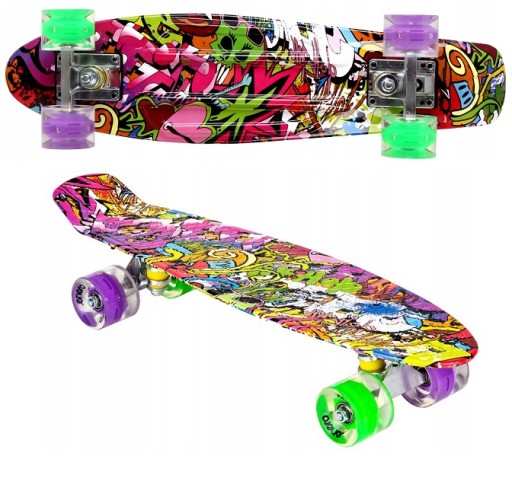 Колеса зі світлодіодним підсвічуванням: 60 x 45 мм (діаметр x ширина) Твердість коліс: 82 A Матеріал: поліуретан Вантажівка: Heavy Duty 3,5" Підшипники: ABEC7 Амортизуюча накладка: так Вага користувача: від 20 до 80 кг Вага нетто: 1,620 кг Вага брутто : 1,660 кг Клас: "A" Колір: Різнокольорове графіті Бренд: Enero Відповідає стандарту: PN – EN 13613