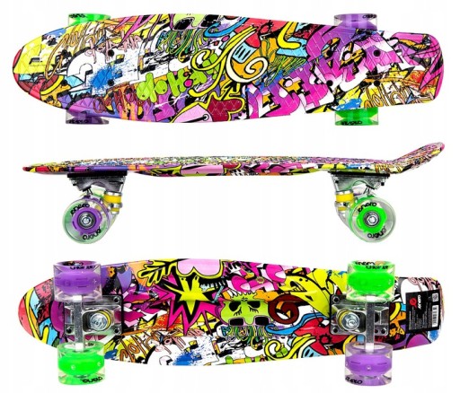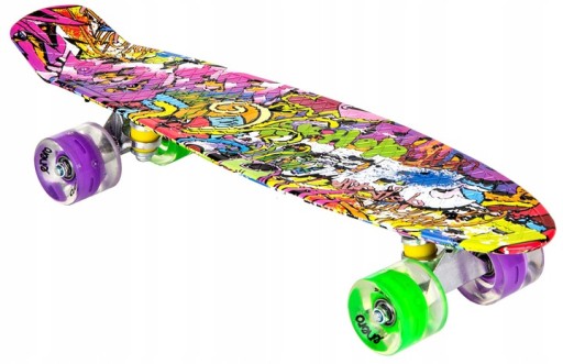 Скейтбординг – це індивідуальний вид спорту, який приносить не тільки задоволення, але й покращує фізичну форму, стимулюючи всі м’язи. Це також дозволяє практикувати наполегливість і терпіння. СКЕЙТБОРД GRAFFITI ENERO ідеально підійде для початку вашої пригоди з цим видом спорту та для вивчення основних трюків. У просторіччі ці типи скейтбордів називають флешбордами. Їхня назва походить від англійського слова «fish», що означає риба, через їх характерну форму, і вони відомі в усьому світі.