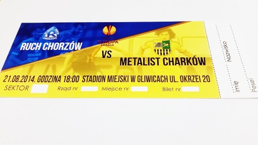 Квиток РУХ Хожув - МЕТАЛІСТ Харків 21.01.2014