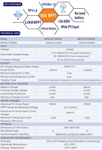 - Номінальна потужність: 5500VA/5500W