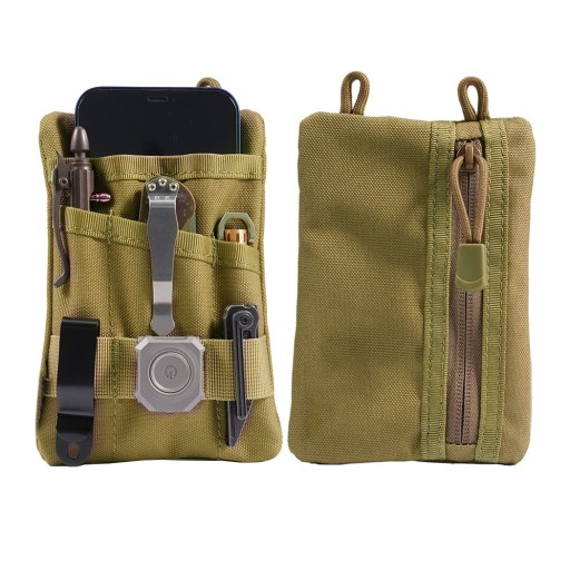 Оновлення якості. Наш кишеньковий органайзер edc виготовлено з найновішого нейлонового матеріалу 600D, який має добру міцність. Наш мішечок EDC має хороші показники стійкості до розтягування та стирання, міцний і довговічний, з певною водонепроникною функцією. Він має високу міцність і не буде пошкоджується, незалежно від того, як його розтягують чи згинають. Сумісність із кількома інструментами. Цей органайзер для сумок edc може бути оснащений принаймні кількома різними інструментами одночасно. Система Molle може містити інструменти різних розмірів, окремі слоти для інструментів для розміщення різних розмірів і форми інструментів, велика кишеня у верхній частині, куди зазвичай вміщується телефон або ноутбук розміром 3,5 x 5,5 дюймів, а також кишеня на блискавці на тильній стороні, де можна розраховувати монети. Ні безладу, ні зникнення. Наш кишеньковий органайзер edc чудовий компаньйон для ваших інструментів, він дозволяє вам попрощатися з турботою про втрату ваших інструментів, попрощатися з безладдям і привести свої інструменти в порядок. Кілька стилів носіння. Ви можете використовувати нейлонову мотузку, щоб повісити невеликий мішечок edc на груди, покласти його у вашій кишені та рюкзаку, або використовуйте гачок, щоб носити його на вашому рюкзаку або петлевому поясі штанів.