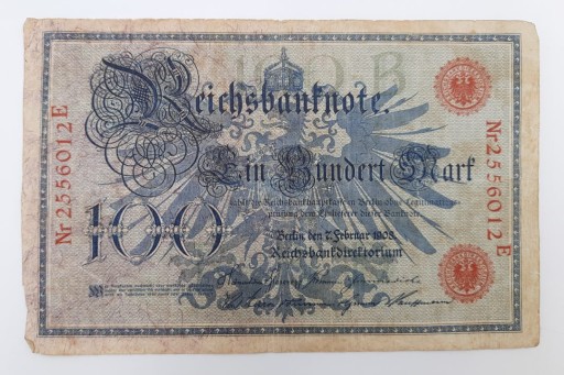 Стара колекційна банкнота Німеччини 100 марок 1908 року