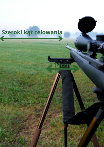 - Можливість широкого регулювання точки прицілювання - завдяки найширшій 14 см прогумованій передній основі корекція точки влучення безшумна та ефективна, дозволяючи відслідковувати ціль по осі ліворуч-право без необхідності рухати древком або брати це з землі. Завдяки використанню такої широкої основи мисливець має можливість відслідковувати ціль на дійсно великій площі.