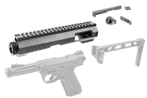 Конверсія сумісна зі стандартом M4 - направляюча приклада та ствольна гайка дозволять вам перенести приклад і передню частину з M4! У набір входить як алюмінієвий ствол у стандарті AAP01, так і стовбурні гайки для ствола M4. Усі елементи встановлюються за допомогою набору гвинтів, що дозволяє подальше розширення та модифікацію конверсії.