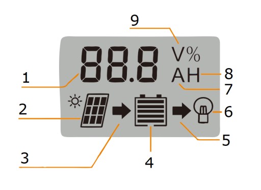 - Контроль рівня заряду акумулятора з можливістю скидання пам'яті вночі (наприклад, для вуличного освітлення)