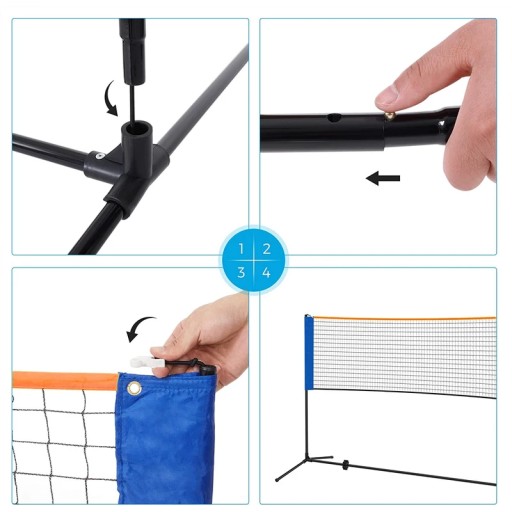 Зібрати сітку легко і швидко без використання інструментів, що дозволяє без проблем почати гру. Виготовлена з міцних матеріалів, наша сітка стійка до атмосферних впливів і забезпечує стабільність завдяки центральній перекладині. Натяжні троси забезпечують належний натяг і гнучкість. У комплект входять кілочки, завдяки яким сітка міцно кріпиться до землі.