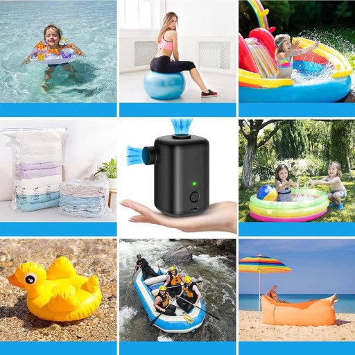 🩱🩱🩱【Довготривале живлення та зарядка через USB】 Акумуляторна електрична повітряна помпа має вбудовану літієву батарею ємністю 3000 мАг, яка забезпечує більш тривалий час роботи. USB-кабель для зарядки, що входить у комплект, можна використовувати з будь-яким пристроєм із USB-інтерфейсом, таким як автомобільне крісло, комп’ютер чи акумулятор, що робить його зручнішим під час літніх подорожей.
