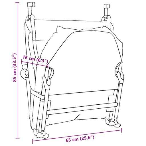 - Розміри в складеному вигляді: 85 x 65 x 16 см (Д x Ш x В)