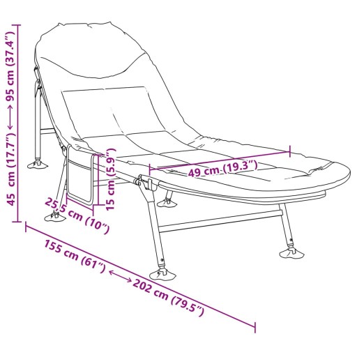 - Багаторазове використання: це рибальське ліжко є складним, його легко зберігати та переносити. Ідеально підходить для риболовлі, кемпінгу та обідньої перерви в офісі.
