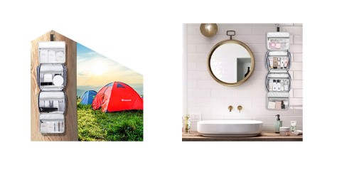 - Цю підвісну туалетну сумку можна використовувати як невелику туалетну сумку для дому, подорожей, офісу чи школи, і вона містить майже все, що вам потрібно.