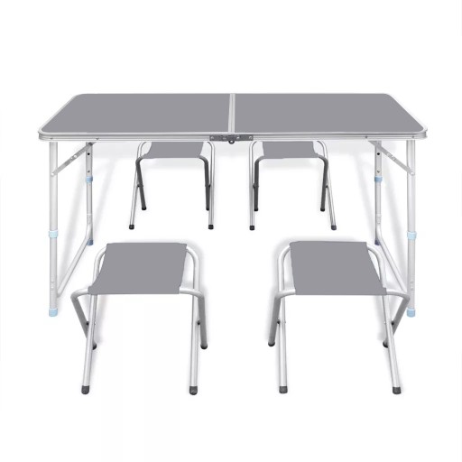 Багато елементів сприяють стабільності набору. Після розкладання столу можна зафіксувати його ніжки і стільницю, не викликаючи несподіваних рухів або ризику випадкового складання під впливом навантажень на стільницю. Ніжки оснащені спеціальною протиковзкою гумою, що забезпечує статичність на слизьких поверхнях і не ковзає. Крім того, сама рама дуже міцна завдяки своїй алюмінієвій конструкції.