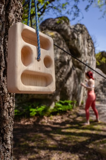 Pocket Hangboard можна вільно повісити на штангу, гілку або просто на перше кільце.