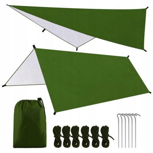 - Брезент намету виготовлений з поліефірної тканини з сріблястим покриттям з внутрішньої сторони.