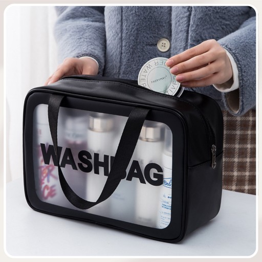 Набір 3в1 складається з трьох косметичок - великої, середньої та маленької. Виготовлений з прозорого ПВХ пластику, який є водонепроникним і надзвичайно простим у чищенні. Вони ідеально підходять для подорожей або відпочинку, наприклад, відвідування басейну або тренажерного залу. У них можна помістити не тільки косметичні та гігієнічні приналежності, але і невеликий рушник, гаманець і телефон. Прозорий матеріал полегшить швидкий пошук потрібної речі та прискорить реєстрацію в аеропорту. Найбільшу косметичку можна використовувати і як сумочку завдяки довгій чорній ручці.
