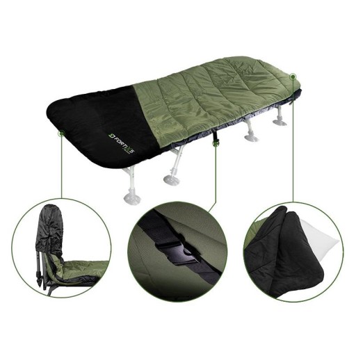 Залізти в спальник можна з обох сторін, тому що він має блискавки з правого і лівого боку. Завдяки цьому ви зможете розмістити своє рибальське ліжко з будь-якого боку намету і швидко вистрибнути з нього, коли почуєте сигналізацію клювання. Відділення COLDSTOP на блискавці з обох сторін запобігає проникненню холодного повітря в спальний мішок. Крім того, блискавки оснащені пластиковими затискачами з кожного боку, щоб їх було легше відкривати та закривати.