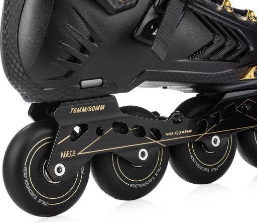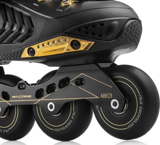 Модель характеризується міцною і надійною конструкцією, яка також дуже легка. NILS EXTREME має алюмінієву доріжку та ПП основу взуття. Крім того, роликові ковзани вентильовані та мають дихаючу та проникну мембрану. Завдяки йому нога не потіє навіть у спекотні дні.