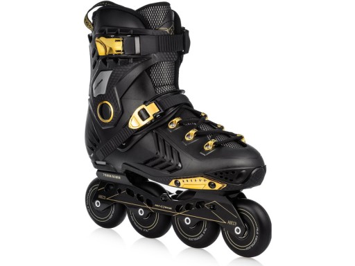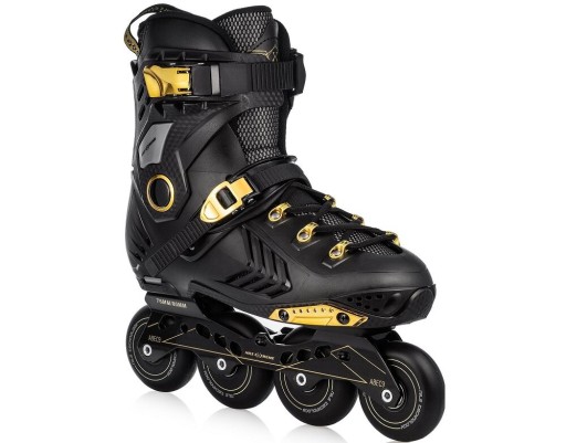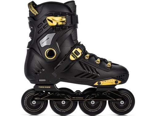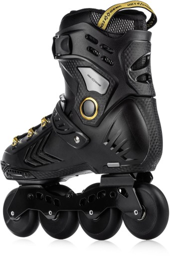 Роликові ковзани радують своїм сучасним дизайном. Стильно і сучасно виглядає чорна модель з золотими вставками. Взуття виготовлено з м'яких матеріалів EVA і VELVET, MESH і піни високої щільності. Завдяки цьому роликові ковзани дуже зручні та ідеально пристосовуються до стопи, забезпечуючи чудовий комфорт використання - навіть протягом багатьох годин катання.