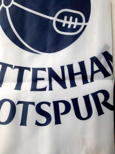 Стан: ДУЖЕ ДОБРЕ Новий, фабрично упакований: Великий прапор, виданий англійським футбольним клубом Тоттенхем Хотспур Лондон (розміри 152 х 91 см). На ньому зображено герб клубу з його назвою на тлі його кольорів. На одній із менших сторін прапор має шов разом із двома металевими кільцями з отворами, що дозволяє підвішувати його на древку чи древку. Він виготовлений з поліестеру і поміщений в упаковку з гербом ФК Тоттенхем Хотспур і голограмою клубу. Це офіційний сувенір Лондонського клубу.
