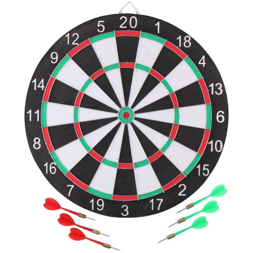 - DOUBLE-SIDED - Двосторонній дартс із шістьма дротиками, призначений для соціальної гри в дартс. З двох сторін є різний малюнок, що дозволяє урізноманітнити ігровий процес. Щит має діаметр 42 см і товщину 1,5 см.