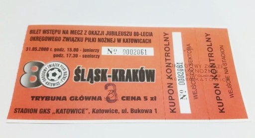 Старий квиток ŚLĄSK - KRAKÓW 31/05/2000 v.2