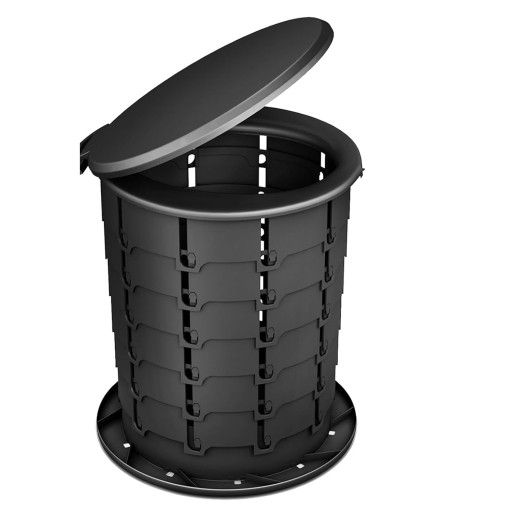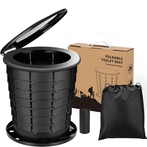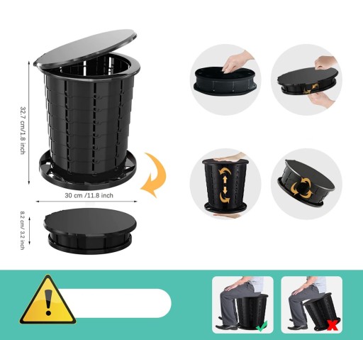 - Універсальний, можна використовувати як переносний туалет, складаний табурет, контейнер для зберігання, журнальний столик або відро для сміття.