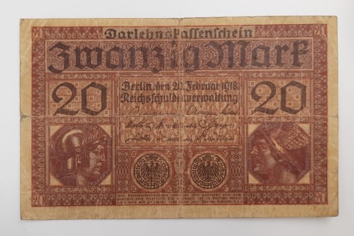 Стара колекційна банкнота Німеччина 20 марок 1918 року