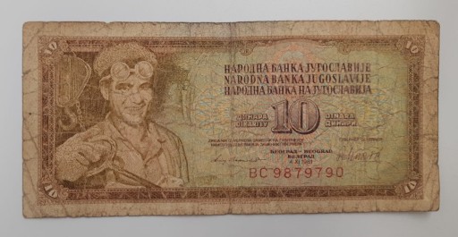 Стара колекційна банкнота 10 динарів 1981 року Югославія