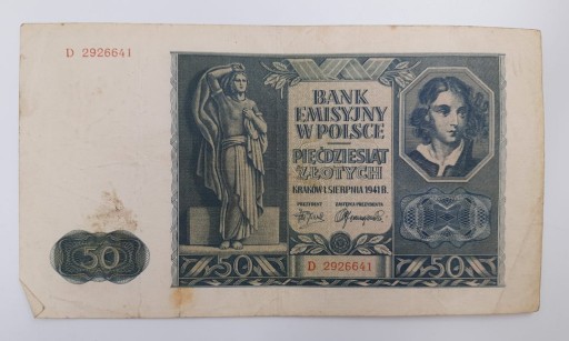 Стара колекційна банкнота Польща 50 злотих 1941 р