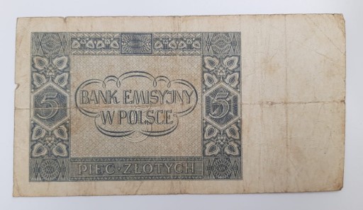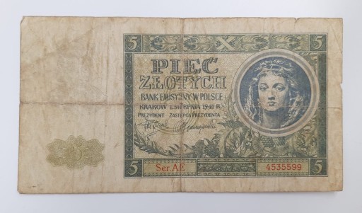Стара колекційна банкнота Польща 5 злотих 1941 р