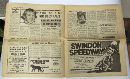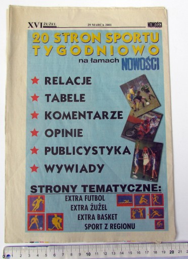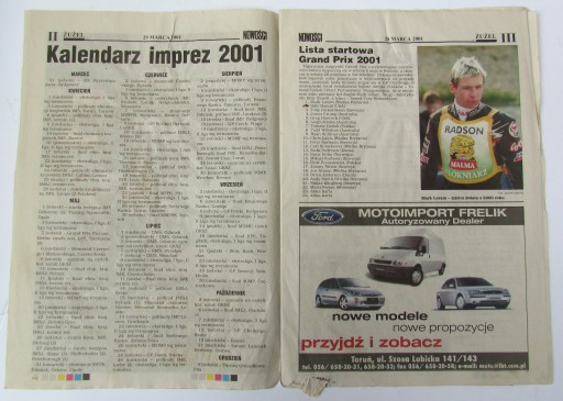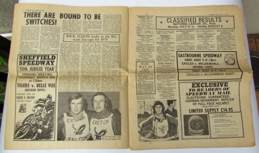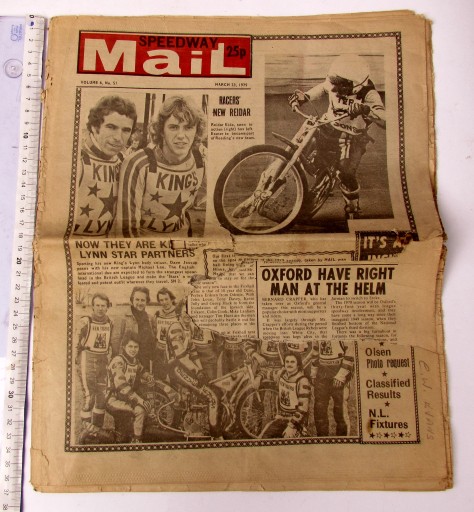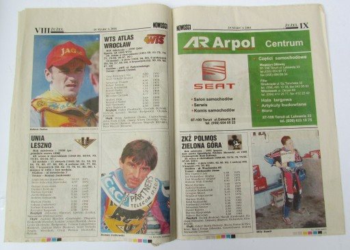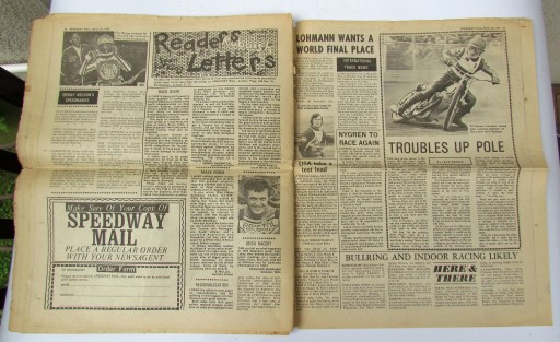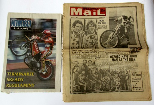 Пропоную SPEEDWAY, ГАЗЕТНА ПОШТА SPEEDWAY 1979 + НОВІ ПРОДУКТИ 2001 - 2 штуки в хорошому стані, які видно на прикріплених фото. Газета Mail Speedway від 23 березня 1979 року має пошкоджену першу сторінку - як видно на фото. Окрім цього, усі інші сторінки є повними та знаходяться в стані, показаному на доданих фотографіях. Новини спідвею польською мовою мають всі сторінки, газета не має механічних пошкоджень типу розривів, розривів і т.д. Рекомендую.