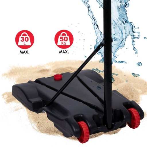 Щоб безпечно і досхочу грати в баскетбол, набір оснащений міцною основою. Його потрібно лише наповнити максимум 30 літрами води або 50 кілограмами піску, щоб набір не перекинувся під час використання.