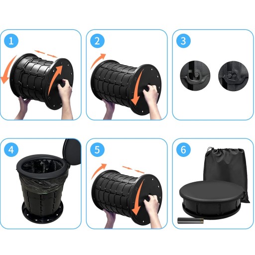☑️Багатофункціональний і простий у транспортуванні: портативний кемпінговий туалет можна легко зберігати, він дуже маленький і плоский, дуже економить місце. Дає вам свободу перемикатися між різними режимами використання, як кемпінговий туалет, складаний табурет, кошик для речей, столик або відро для сміття.