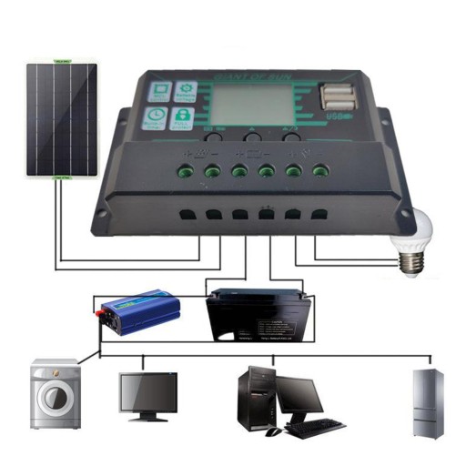 [Широка сумісність] Контролер сонячного зарядного пристрою автоматично працює на 12 або 24 В. Подвійні вихідні порти USB 5 В/3 А підтримують мобільні телефони, планшети та інші пристрої, які вимагають 5 В.