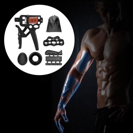 НАБІР ДЛЯ ПОСИЛЕННЯ РУКИ З 5 ШТ.: Включає регульований пристрій для зміцнення рукоятки, тренажер для пальців, стрічку для розтягування пальців, силу кисті, м’яч для захоплення. Це допомагає зміцнити та привести в тонус руки, пальці, зап’ястки, передпліччя та м’язи плечей.