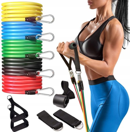 5 гумок різної міцності: жовта 4,5 кг, червона 6,8 кг, синя 9,1 кг, зелена 11 кг, чорна 14 кг