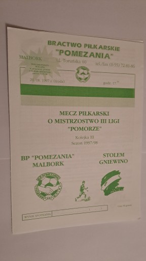 ПОМЕЗАНІЯ МАЛЬБОРК - СТОЛЕМ ГНЕВІНО 20/08/1997 ПРОГРАМА МАТЧУ