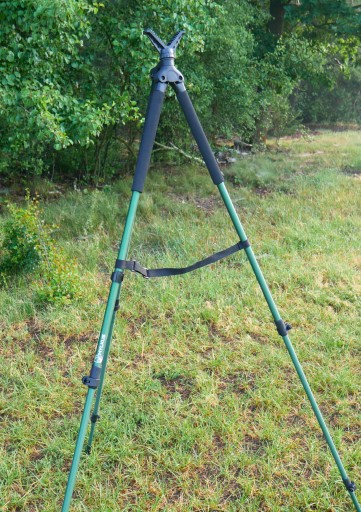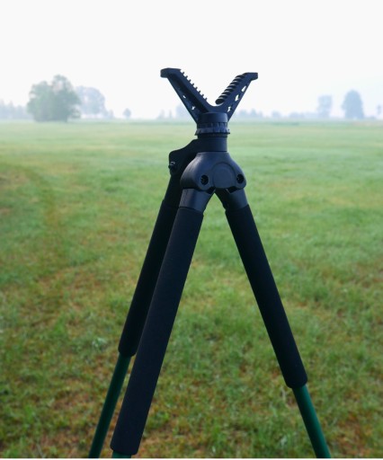 Поперечина ні в чому не поступається здвоєним конструкціям, коштуючи вдвічі дорожче. Ковзал легко і швидко розкладається, а 3 міцні алюмінієві ніжки гарантують стабільну підтримку зброї в будь-якій ситуації. Максимальну ширину двох ніжок можна регулювати за допомогою ремінця, що робить розкладання ще швидше. Ноги рухаються в певній площині, тому відсутній ефект, відомий мисливцям від популярних штативів з ременем, що підтримує зброю, де часто виникають труднощі з її розгортанням і стійкістю під час стрільби. Довжина ніжок, що регулюється за допомогою кнопок (85 см-195 см), дозволяє регулювати висоту штанги під зріст і положення стрільця, який може стояти, сидіти або стояти на колінах. Головка кросієра обертається на 360 градусів, дозволяючи відслідковувати ціль, і покрита нековзним гумовим матеріалом, що забезпечує тихе і безпечне розташування зброї. Pastoral дуже тихий, він практично не шумить під час налаштування та прицілювання, а водонепроникні пінопластові рукоятки забезпечують надійний хват незалежно від погодних умов. Ніжки мають гумові протиковзкі ніжки та чохли, що входять у комплект, щоб пастораль не просідала в брудну землю. Знявши V-подібну підставку, можна кріпити аксесуари на різьблення 3/8". Завдяки легкій і продуманій конструкції жезл в складеному вигляді надійно лежить в руці і не є додатковим тягарем для мисливця. під час полювання.
