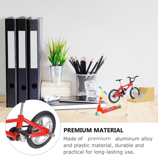 Цей продукт являє собою набір з 3 міні-пальчикових іграшок, виготовлених зі сплаву алюмінію та пластику, високоякісних та міцних. Включає 1 велосипед, 1 самокат і 1 пандус. Підходить для професійного та особистого використання. Виберіть його для себе.