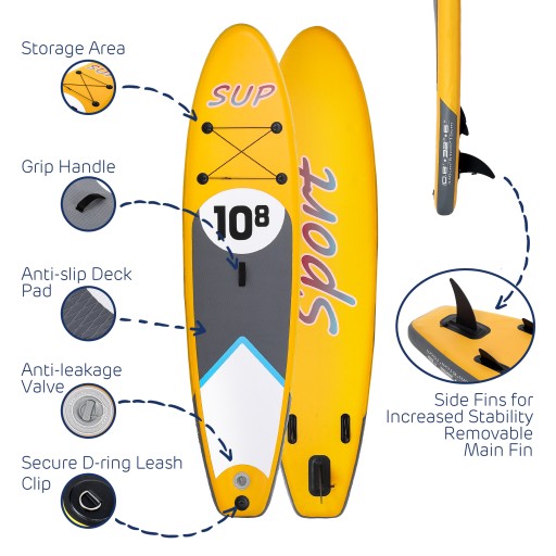【Безпека та якість】 Оновлена надувна дошка преміум-класу виготовлена з високоякісного військового матеріалу. Наша надувна дошка для веслування має м’яку, стійку та неслизьку верхню частину. У той же час наша пропозиція також включає повідці для щиколотки, які можуть забезпечити найвищий рівень безпеки для серферів.
