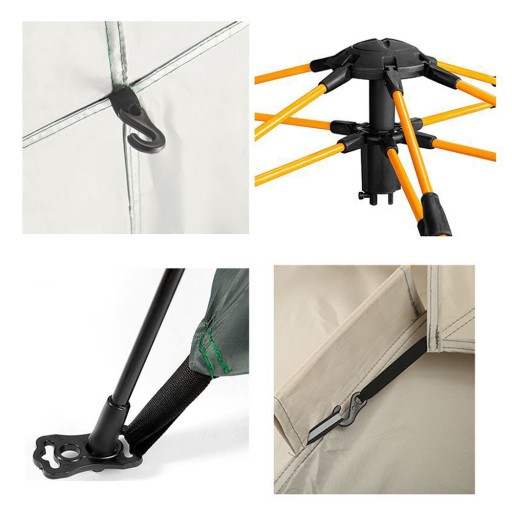 - Намет з 2 дверима і 2 вікнами, оснащений дихаючої дрібною сіткою, яка покращує циркуляцію повітря в наметі, не душно і ефективно запобігає проникненню комарів.