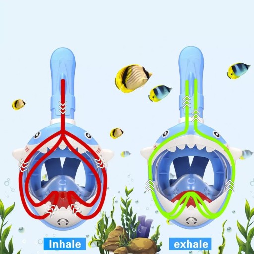 ✔️ БЕЗПЕКА ВИКОРИСТАННЯ: Маска має захист від потрапляння води в очі та рот дитини. Дизайн, що покриває все обличчя, мінімізує ризик подразнення та гарантує, що вода не просочується в маску, що особливо важливо для молодших користувачів.